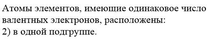Атомы элементов,имеющие одинаковое число валентных электронов,расположены:1) в одной группе2)в одной подгруппе3)в одном периоде4)по диаганали