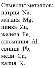 Напишите символы металлов:натрия,магния,цинка,железа,алюминия,свинца,меди,калия.