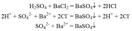 Уравнение реакции в молекулярной , полной и сокращенной йоной форме сульфатной кислоты и раствор барий хлорида