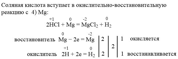 Соляная кислота вступает в окислительно-восстановительную реакцию с 1) MgCO3 2) Mg(OH)2 3) MgO 4) Mg