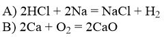 A)HCL+Na-> B)Ca+O...