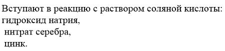 Из приведенного списка веществ выпишите те которые вступают в реакцию с раствором соляной кислоты, гидроксид натрия, медь, нитрат серебра, цинк, оксид азота4