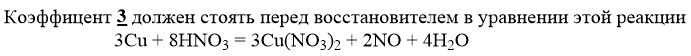 Какой коэффицент должен стоять перед восстановителем в уравнении этой реакции 3Cu+8HNO3-3Cu(NO3)2+2NO+4H2O