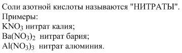 Как называются соли азотной кислоты. Приведи 3 примера. 3.