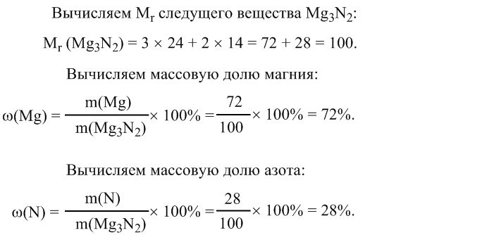 Вычислете Mr массовые доли химических элементов следущего вещества Mg3 N2
