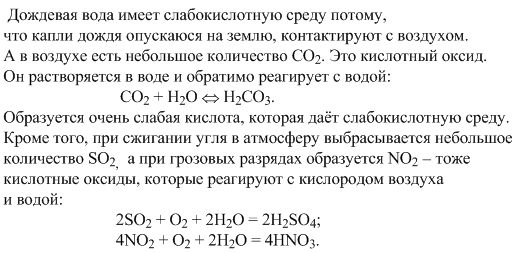 Объясните, почему дождевая вода имеет слабокислотную среду