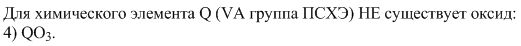 Для химического элемента Q (VA-группа ПСХЭ) НЕ существует оксид: 1) QO 2) Q2O5 3)Q2O4 4) QO3 5) Q2O3