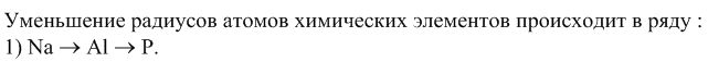 Уменьшение радиусов атомов химических элементов происходит в ряду : 1) Na ⇒ Al ⇒ P 2) C⇒ Al⇒Mg 3) S⇒ P⇒AL 4) Li⇒Na⇒K