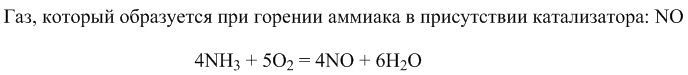 Укажите газ который образуется при горении аммиака в присутствии катализатора