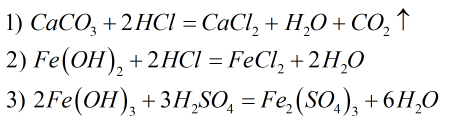 Caco3+hcl=? fe(oh)2+hcl=? fe(oh)3+h2so4=?