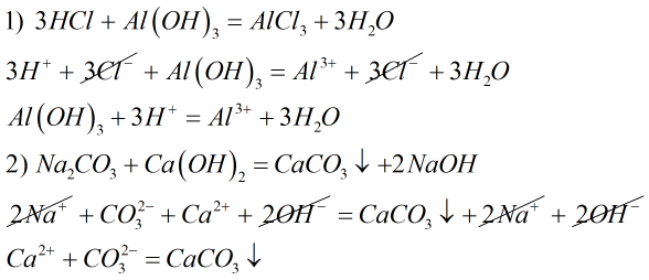 Составить уравнение реакций в молекулярном и ионном видах HCl+Al(OH)3→; Na2CO3+Ca(OH)2→;
