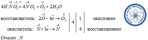 Укажите элемент-окислитель уравнения реакции термического разложения азотной кислоты.