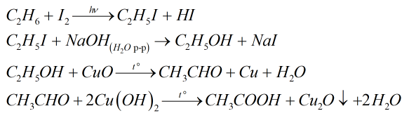 Цепочка превращений C2H6-C2H5I-C2H5OH-C2H4O-C2H4O2
