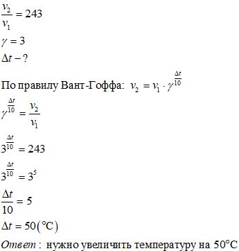 Для увеличения скорости реакции в 243 раза температурный коэффициент 3 температуру газообразной смеси следует повысить