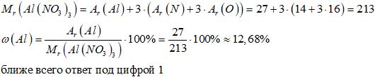 Массовая доля алюминия в нитрате алюминия 1)12,6% 2)13% 3)13,5% 4)14,7%