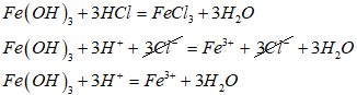 Напишите реакцию ионного обмена в молекулярном полном и сокращённом ионом виде.Fe(OH)3+HCI--->