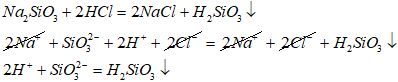 Написать реакцию ионного обмена между следующими веществами (полное и сокращенное ионное уравнения): Na2SiO3 и HCl