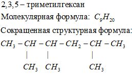 · Молекулярную формулу.;Сокращенную структурную формулу 2,3,5-триметилгексан