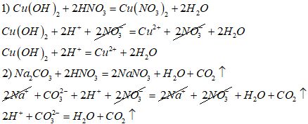 Запишите молекулярное и ионное уравнение реакций Cu(OH)2+HNO3 Na2CO3+HNO3