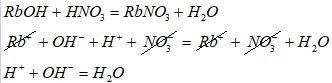 Гидроксид рубидия+азотная кислота.малекулярная уровнение и ионная