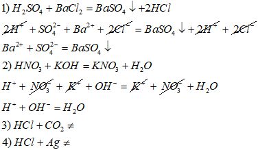 H2SO4+BaCl2= HNO3+KOH= HCl+CO2= HCl+Ag= Необходимо написать ионные уравнения реакций
