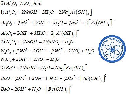2.Гидроксид натрия реагирует в растворе с каждым оксидом набора: а) CaO, Co2, Al,O3; б) Al2O3, N2O5, BeO; в) BeO, MgO, SiO2; г) NO, Al2O3,BeO; Напишите уравнения этих реакций в ионно-молекулярном виде.