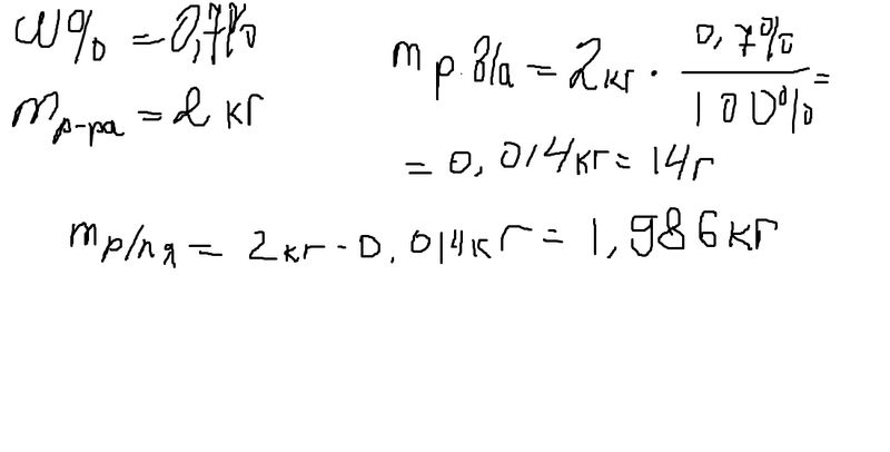 Для обработки растений используют 0,7% раствор CuSO4. Найти массу CuSO4 и массу воды, необходим го для приготовления 2 кг данного раствора