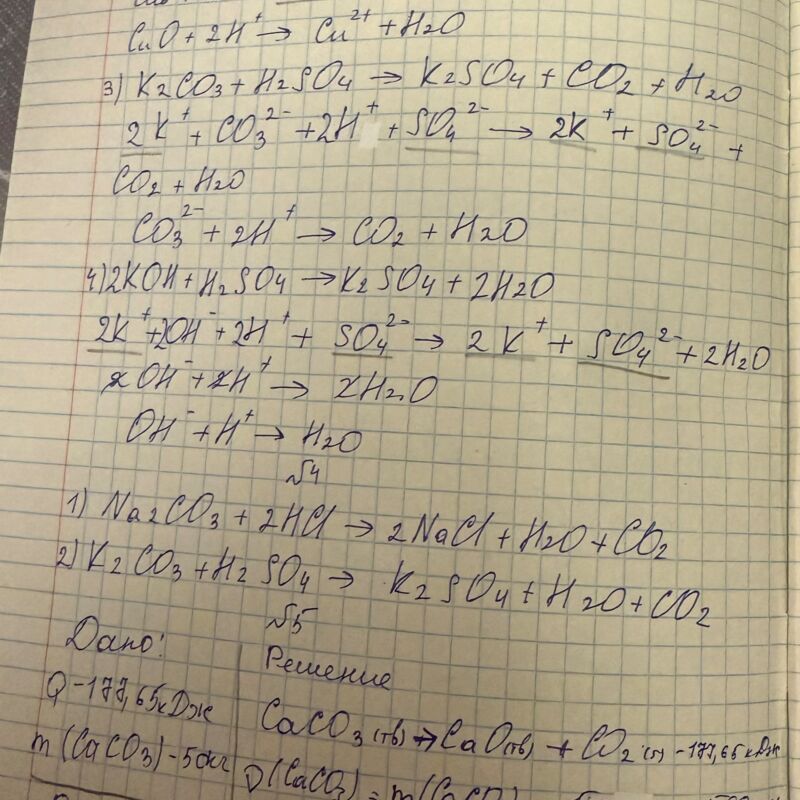 Допишите уравнения практически осуществимых химических реакций и рассмотрите их в свете представлений электролитической диссоциации:Zn + H2SO4 = Cu + HCl = Na2SO4 + BaCl2 =