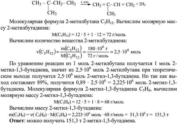 Комментарий к задаче, цитирую: "Какую массу 2-метилбутадиена-1.3 можно получить из 180 тонн?" Вполне понятно, что если в условии указано 180 тонн неизвестно чего, то решить такую задачу невозможно.