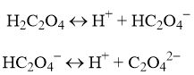 Процесс диссоциации щавелевой кислоты протекает обратимо в две стадии: