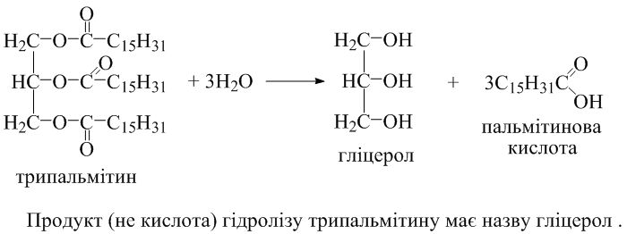 Ответ Продукт (не кислота) гідролізу трипальмітину має назву гліцерол.