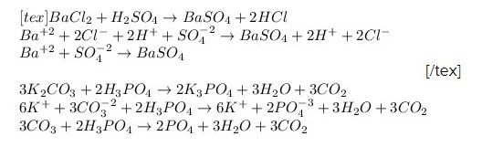 Составить молекулярные и ионные уравнения: а) BaCl2 + H2SO4 = б) K2CO3 + H3PO4 =
