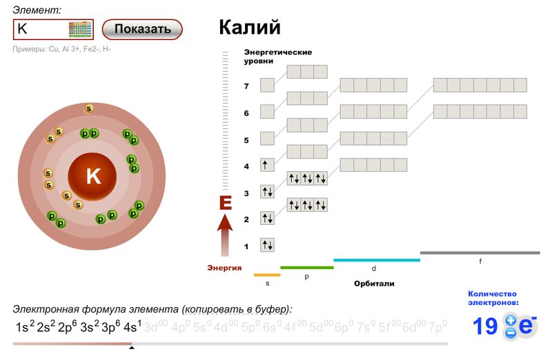 Напишите графическую и электронную формулу К