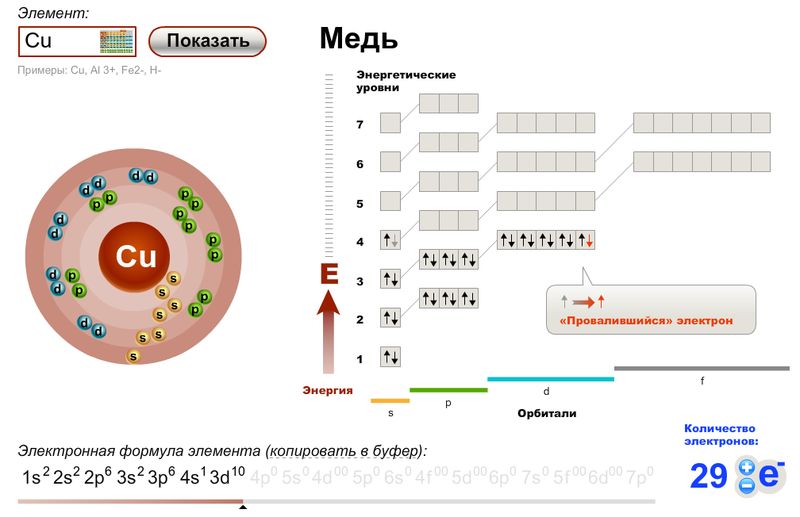 Напишите электронную формулу Cu!