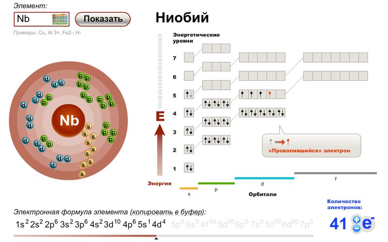 Электронные формула атома ниобия.