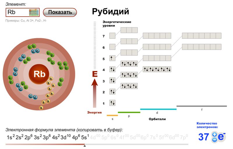 Электронные формула атома рубидия.