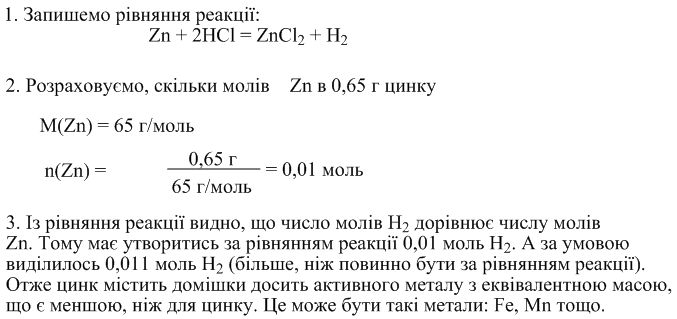 У результаті взаємодії 0,65 г цинку із хлоридною кислотою виділилось 0,011моль водню.Які домішки можуть бути цинку??