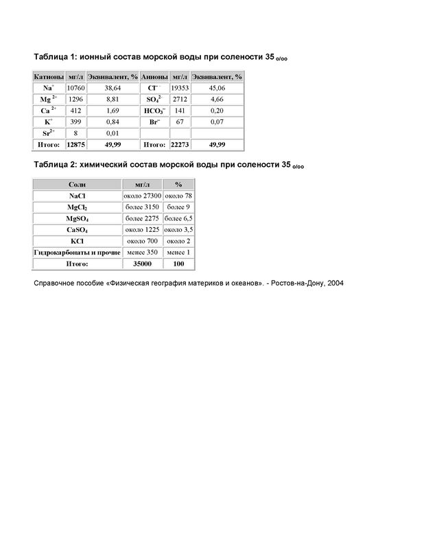 Задание по химии Какие чистые вещества входят в состав морской воды?