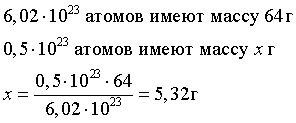 1 моль меди имеет массу 64 г и содержит 6,02*10^23 атомов. Составляем пропорцию