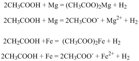 1)2CH3COOH+2Mg=2(CH3COO)2Mg+H2