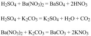 Даны три вещества: серная кислота, нитрат бария и карбонат калия. Запишите все возможные реакции обмена между этими веществами.