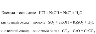 Кислота+основание кислотный оксид+щелочь кислотный оксид+основный оксид