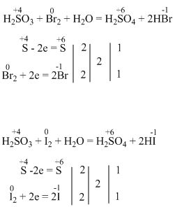 Составить уравнения окислительно-восстановительных реакций сернистой кислоты с бромной и иодной водой.