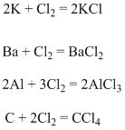 Составте уравнения реакций взаимодействия с Cl2 следующих веществ: калия,бария ,алюминия ,углерода.(Если Cl в данных соединениях проявляет валентность l).