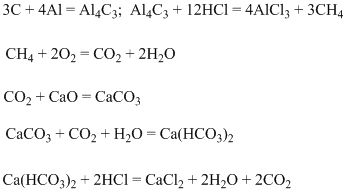 С-CH4-Co2-CaCo3-Ca(HCO3)2-CaCl2