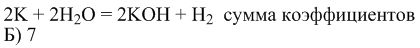 2K+2H2O 2KOH+H2 какая сумма коэффициента?