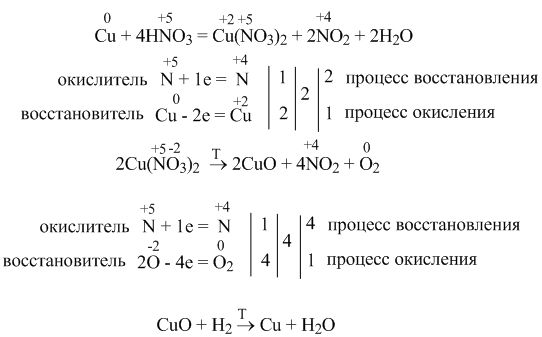 Осуществите превращение HNO3 - Cu(NO3)2 - CuO - Cu Реакцию № 1 рассмотрите с позиции окисления-восстановления
