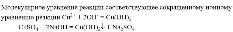 Подберите молекулярное уравнение реакции,соответствующее сокращенному ионному уравнению реакции Cu^2+ + 2OH^- =Cu(OH)2