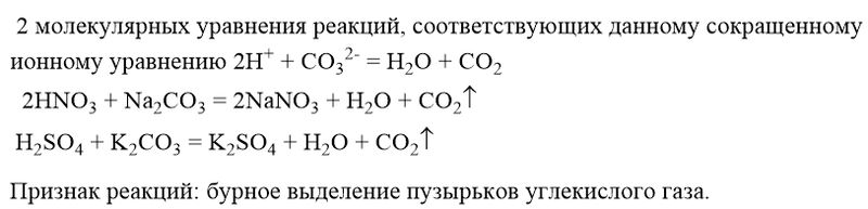 Составьте 2 молекулярных уравнения реакций, соответствующих данному сокращенному ионному 2Н + СО3= Н2О + СО2 Укажите признак реакций