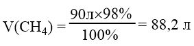Рассчитайте, какой объем метана CH4 можно получить из 90 л природного газа, если объемная доля метана в природном газе 98%